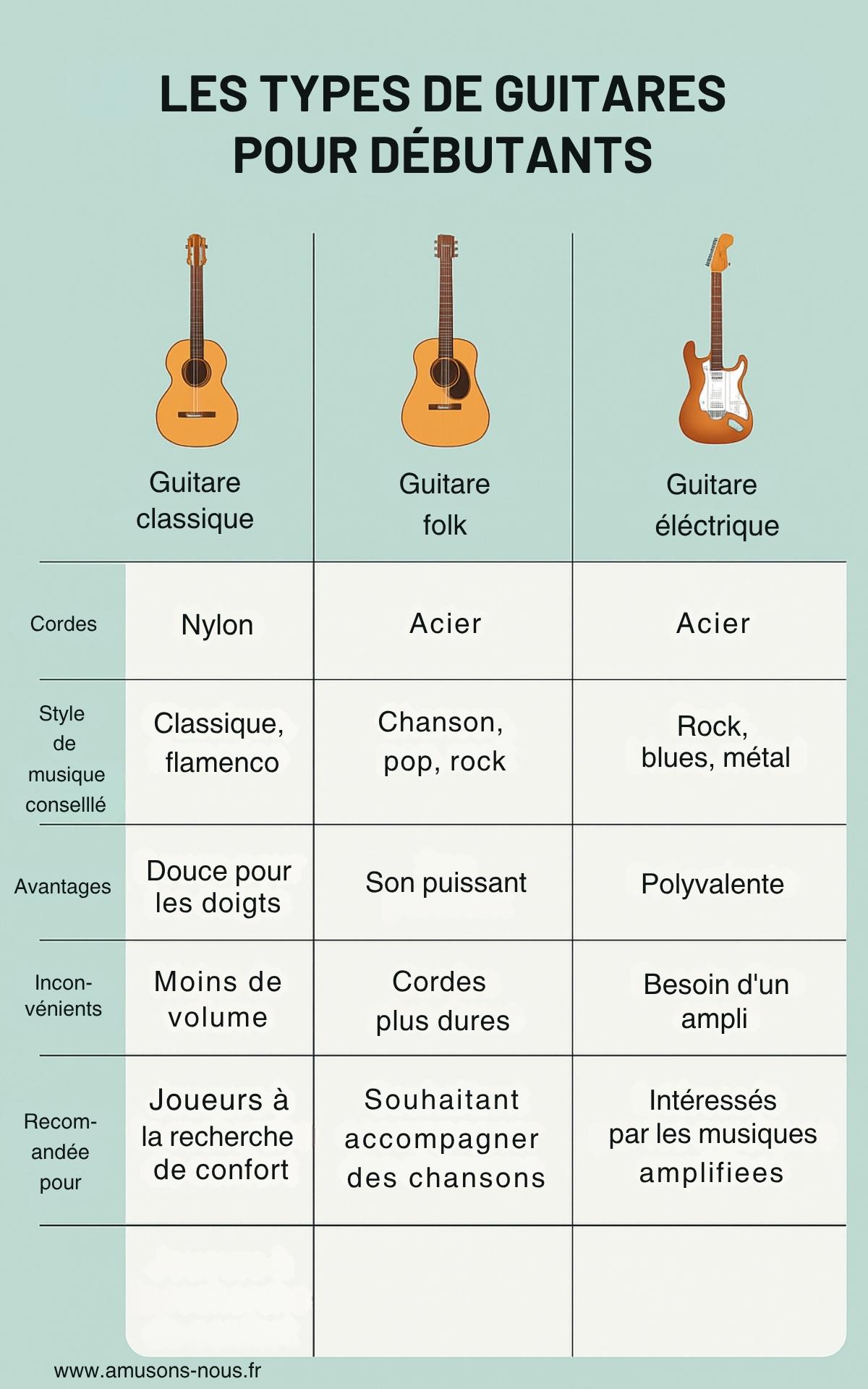 types de guitares débutants
